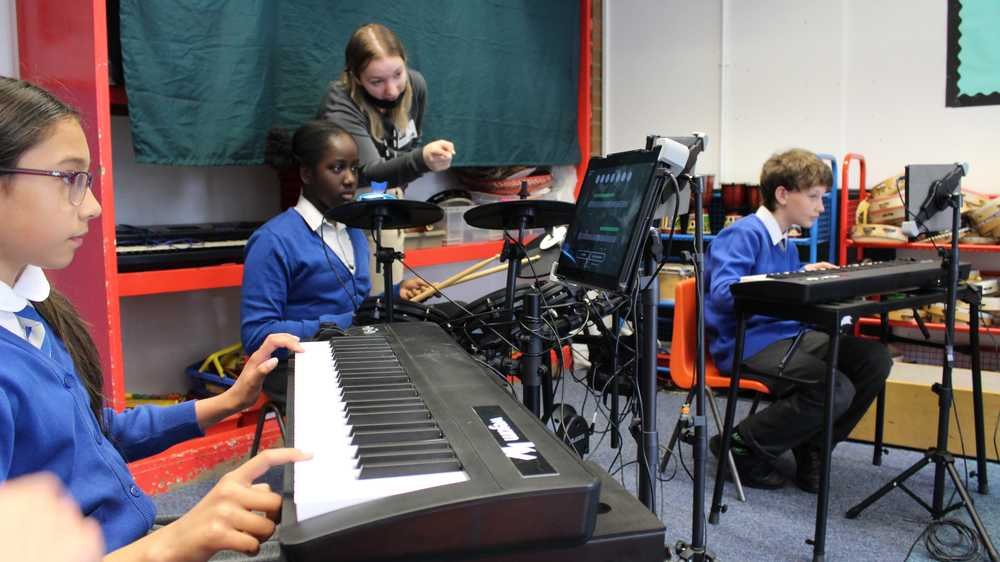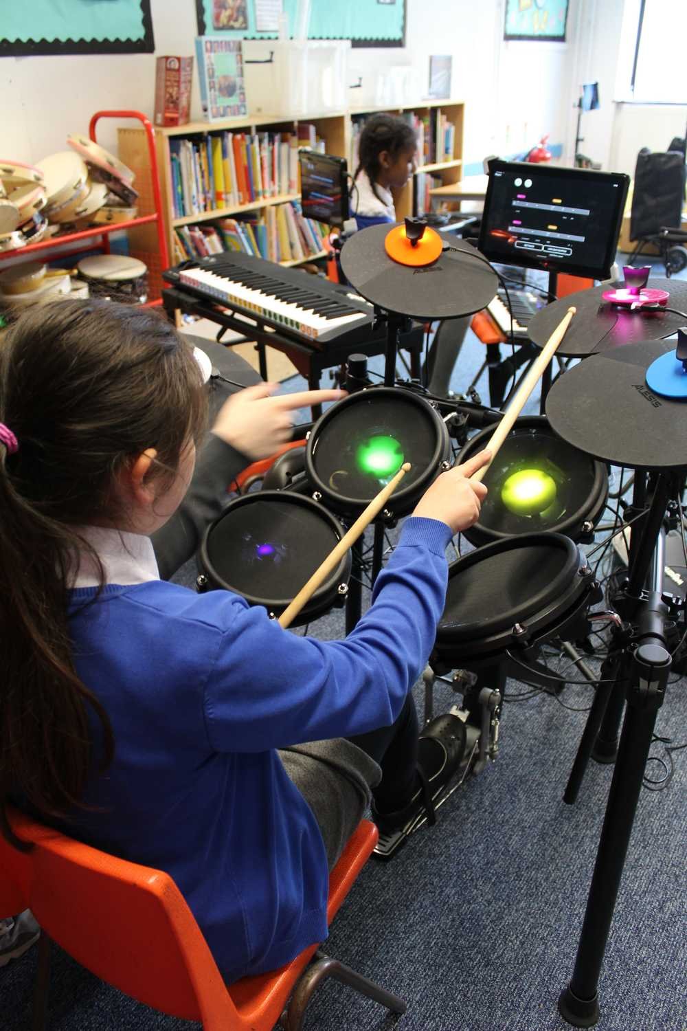 Combining real instruments with some clever technology, our innovative approach means participants can rock out from the very first session!